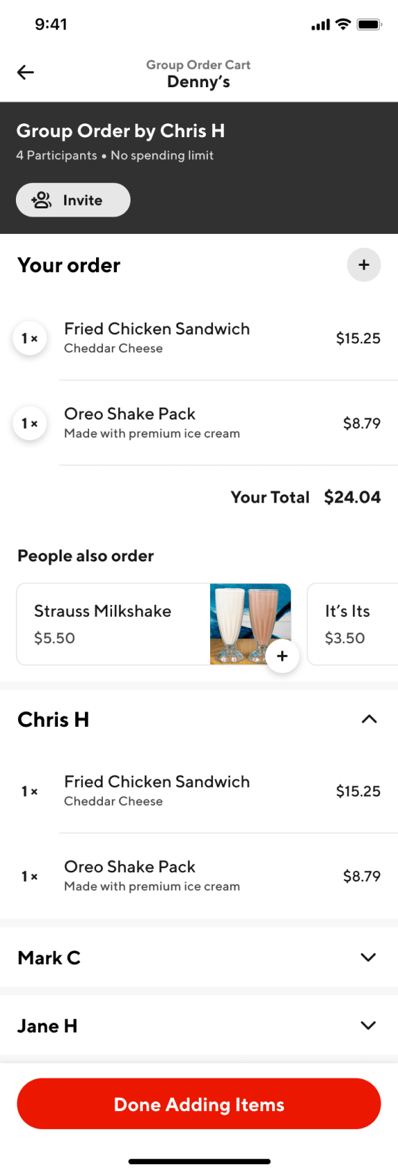 Currently, the group order feature is set up for a business use case as opposed to a family use case, leading to a suboptimal user experience.
