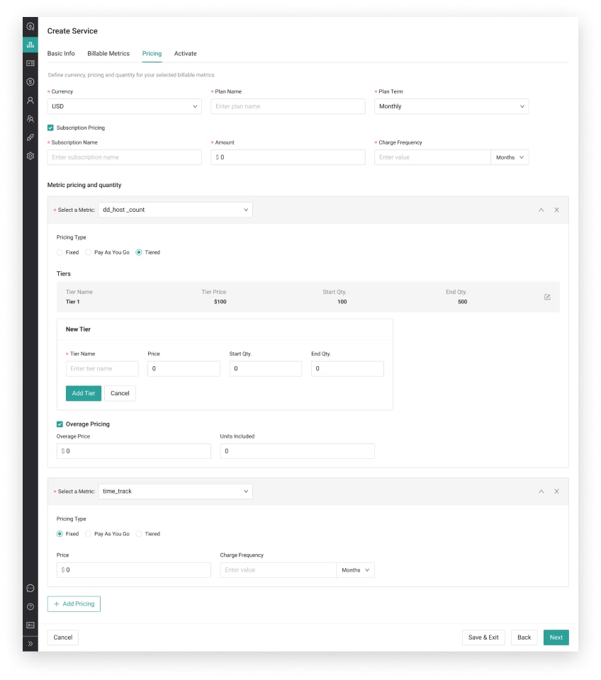An application for SaaS companies to set up and manage the usage metrics and subscription plans of their products